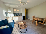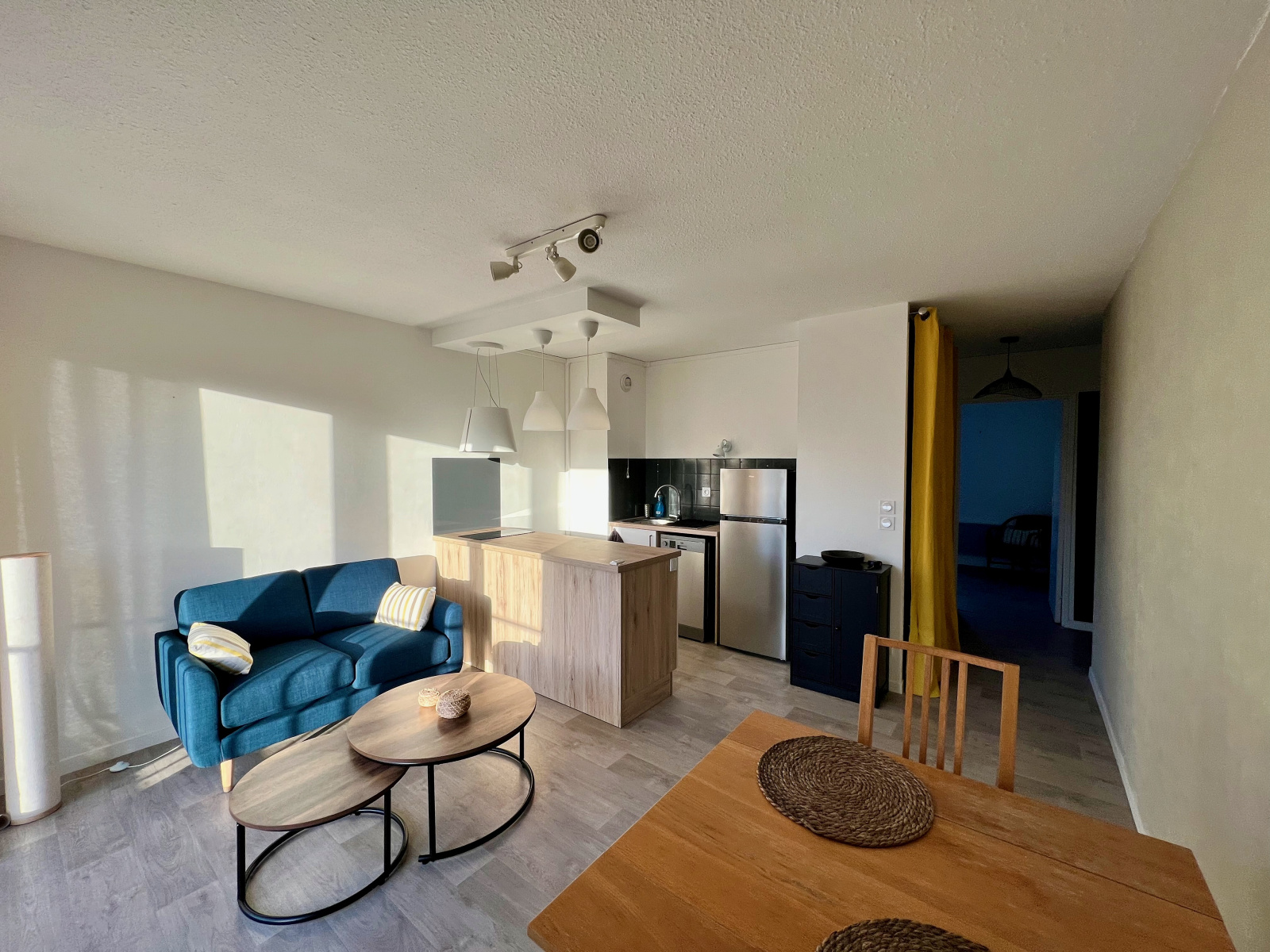 Situé au deuxième étage de la résidence avec ascenseur, il comprend une entrée avec placard (machine à laver), séjour-cuisine aménagée et équipée (meubles bas, four, plaque, hotte, lave-vaisselle, réfrigérateur-congélateur) une terrasse exposée sud, salle d'eau avec WC et une chambre avec dressing.