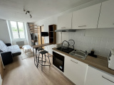 Quimperlé dans le haut de ville à deux pas de l'église, venez découvrir ce studio meublé. Il comprend : Entrée sur cuisine aménagée et équipée (meuble bas et haut, réfrigateur/congélateur, évier, plaque électrique, hotte, four, micro-ondes) salon, salle d'eau avec WC. (Réf annonce : appartement n°5 - 3ème étage)