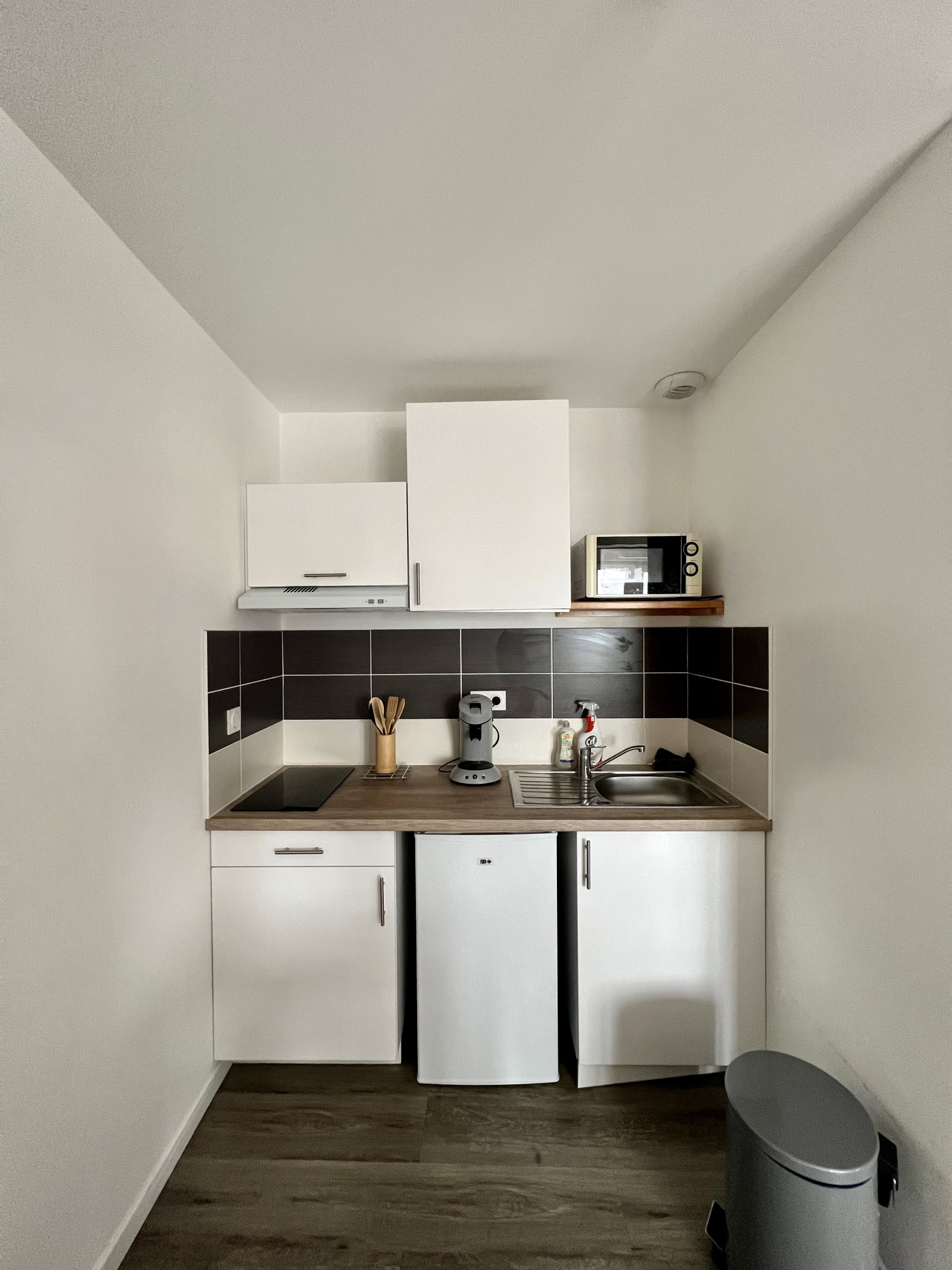 Dans une petit collectif de 6 appartements, au rez-de-chausée un studio meublé de 19 m2 disponible le 22 janvier prochain.