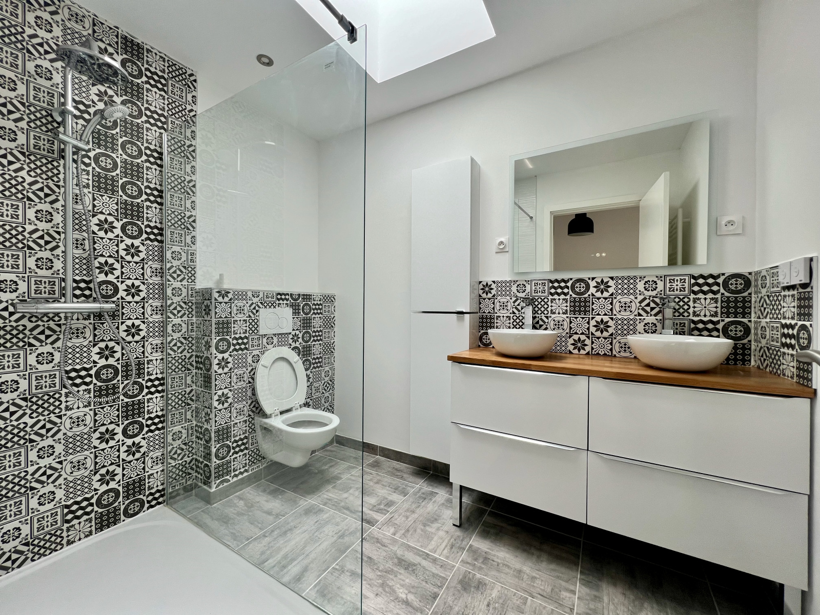 Elle comprend une entrée sur cuisine aménagée et équipée (meubles bas et hauts, four, plaque, hotte, lave-vaisselle), séjour-salon exposé EST avec vue sur le port, dégagement, salle d'eau avec WC, 4 chambres dont une avec dressing et une pièce buanderie.