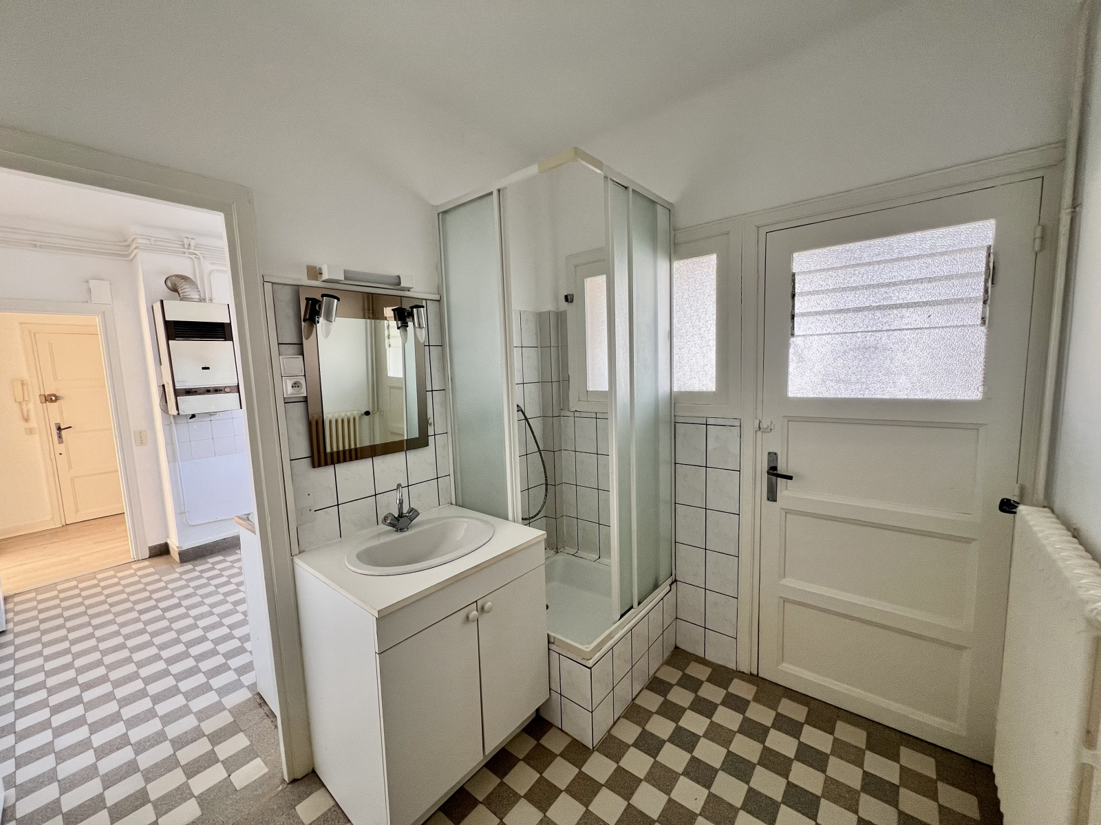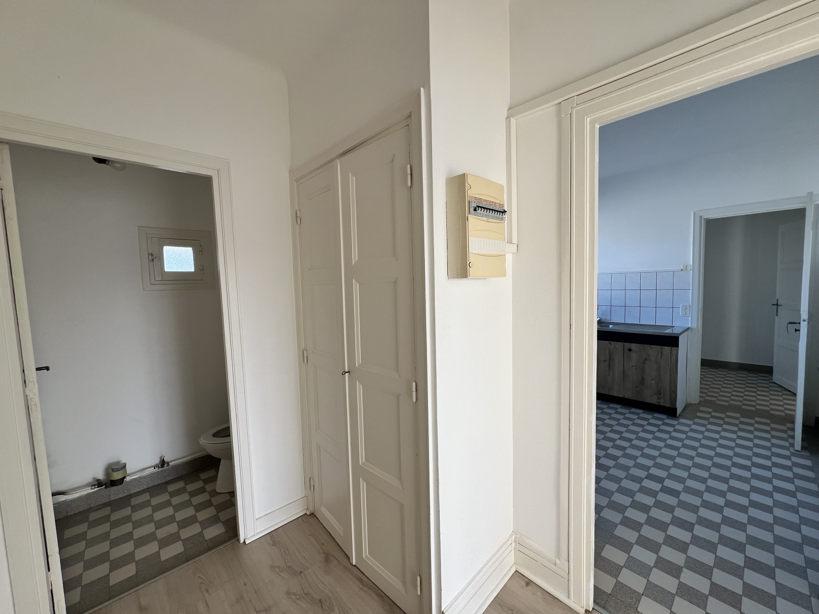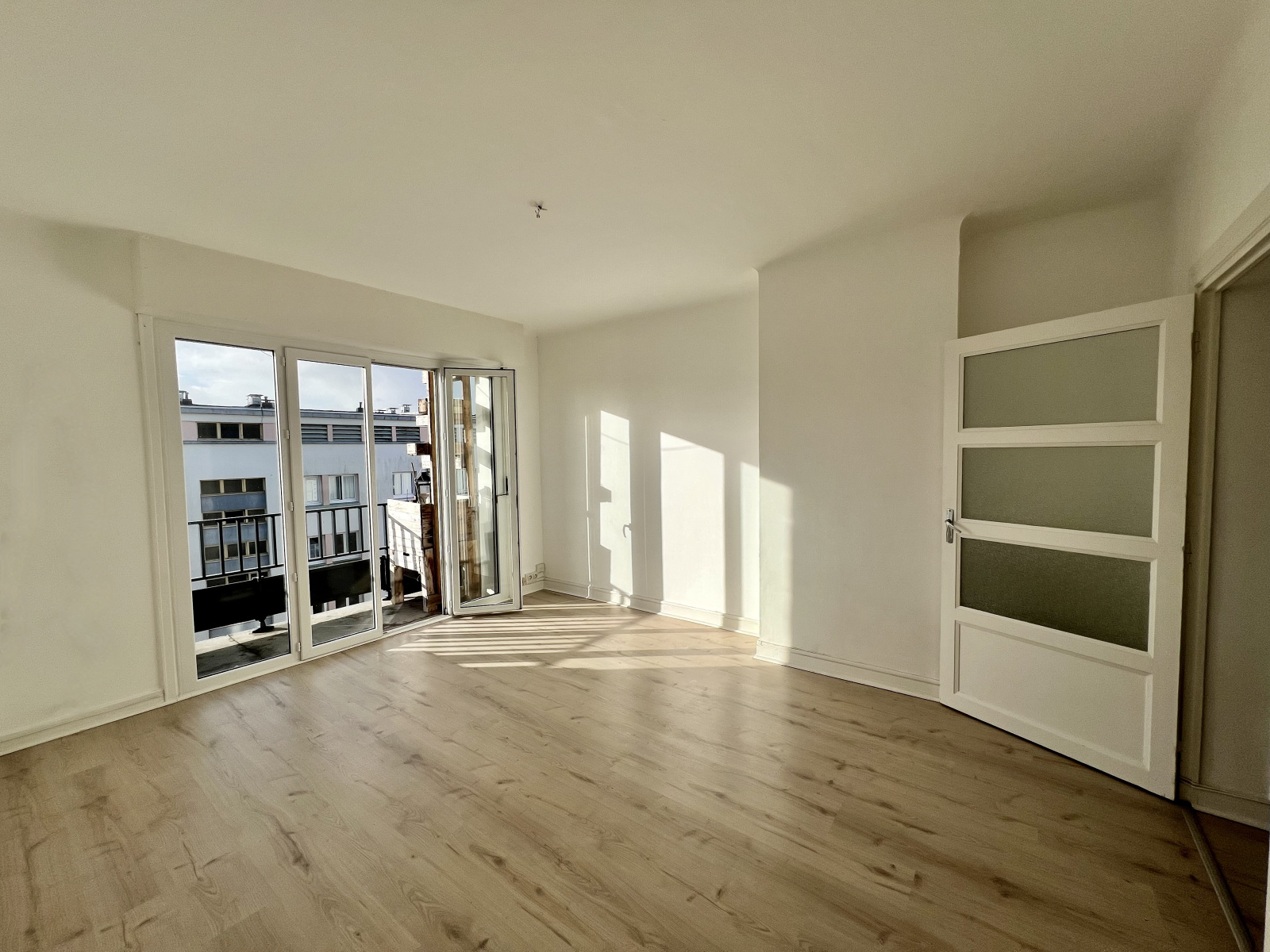Au dernier étage d'un immeuble du centre-ville de Lorient, venez découvrir cet appartement comprenant : Une entrée avec placard, séjour avec balcon exposé sud-ouest, dégagement avec placard, une chambre, salle d'eau, loggia, cuisine et WC.