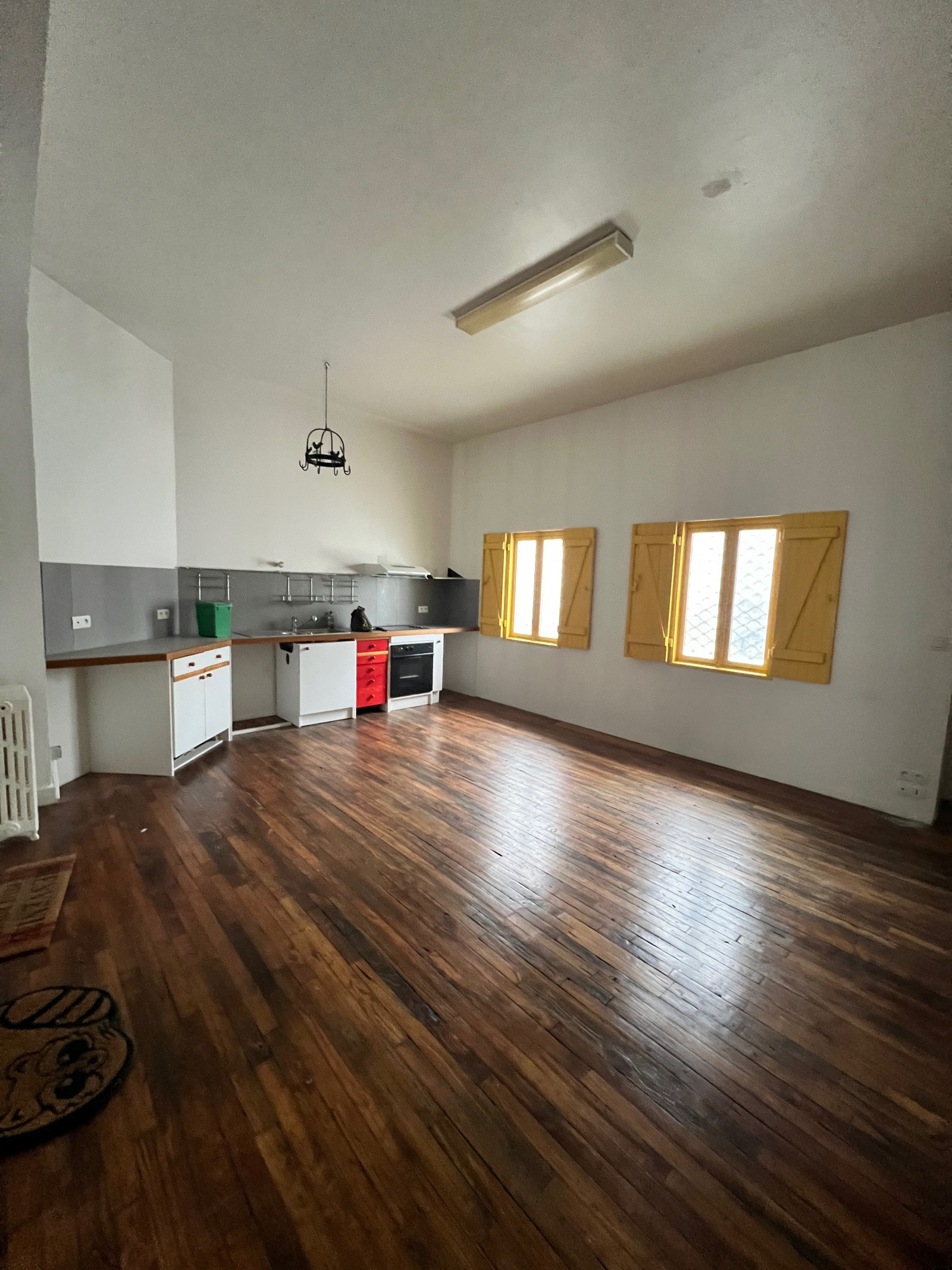 Il comprend une grand pièce de vie avec cuisine ouverte, un placard de rangement et une salle d'eau avec WC.