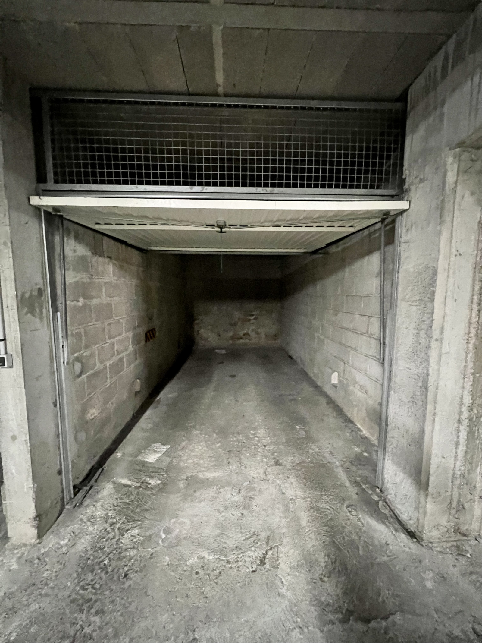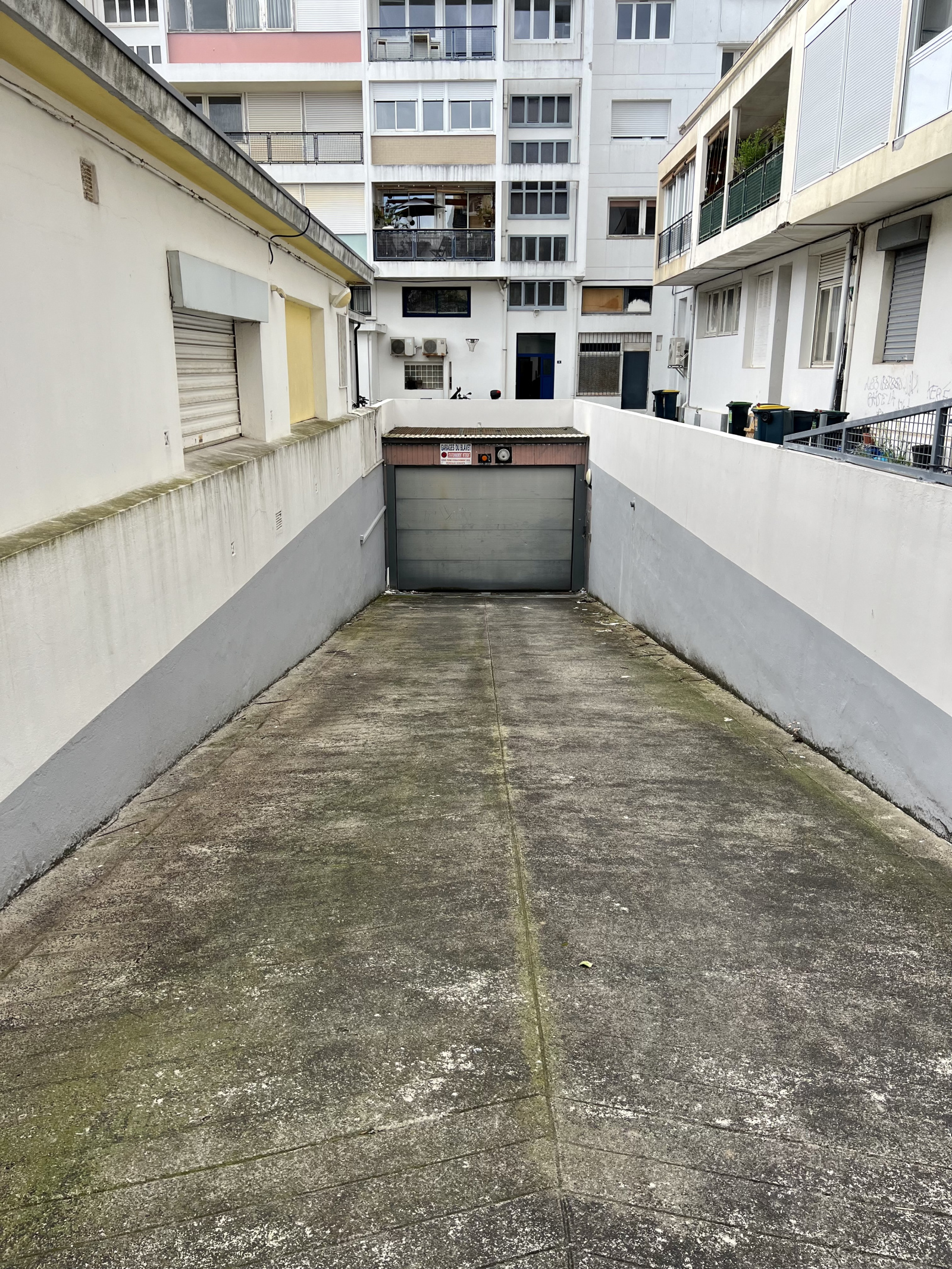 Porte commune motorisée et porte de garage privative coulissante manuelle fermant à clé, électricité dans les parties communes.