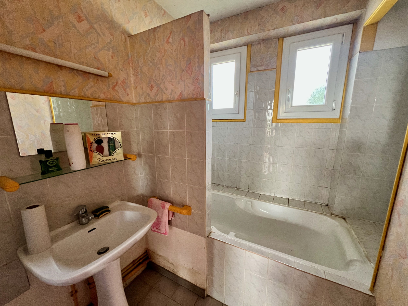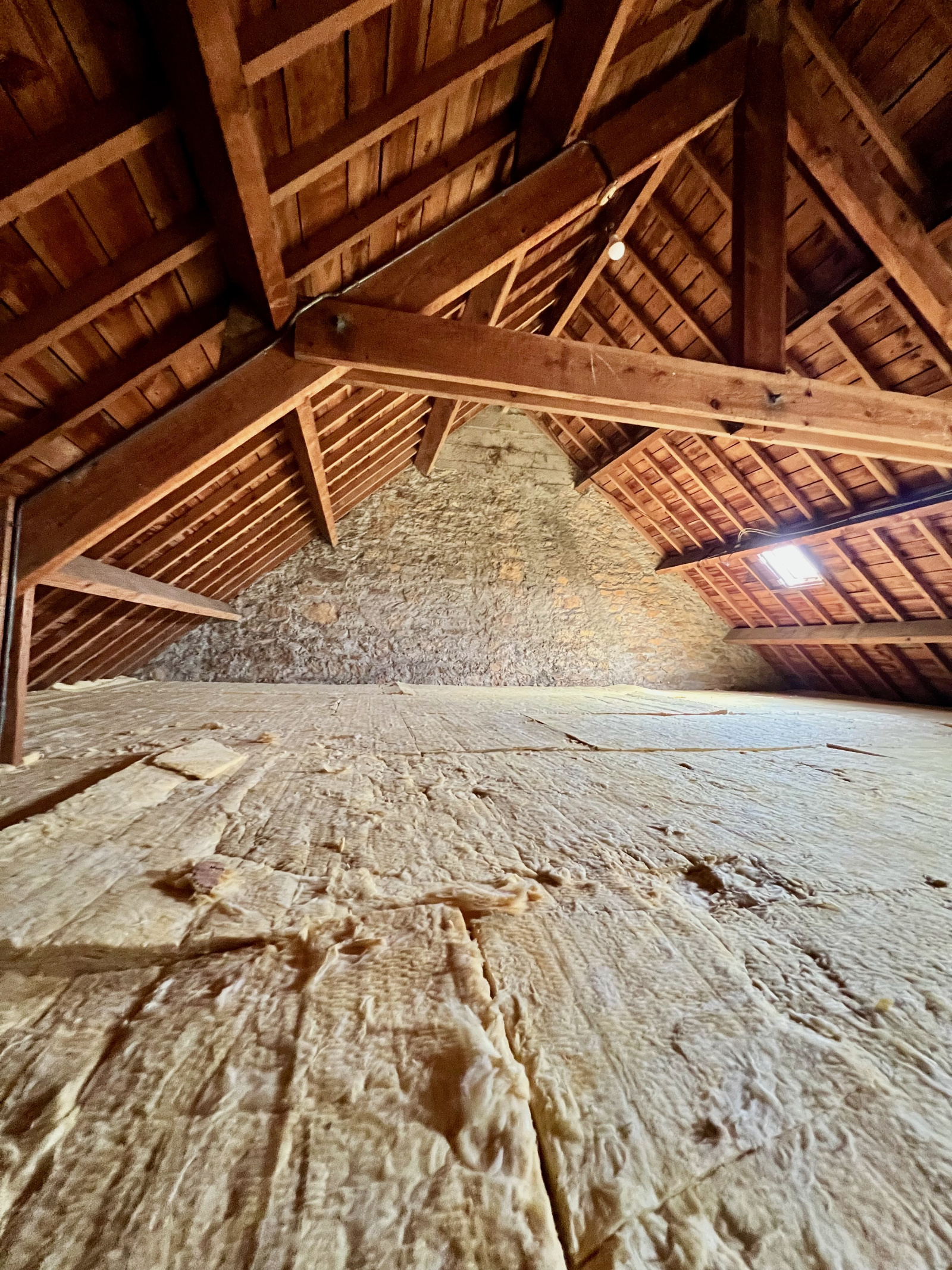 A l'étage dégagement, 3 grandes chambres et une salle de bain ainsi que des combles de 55 m2 au sol à aménager.