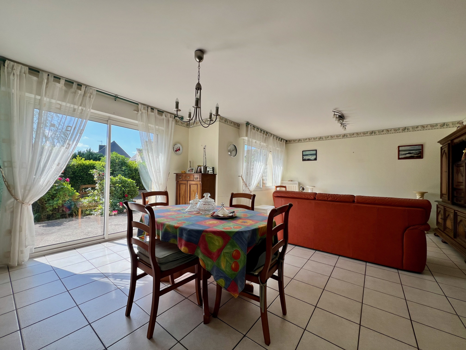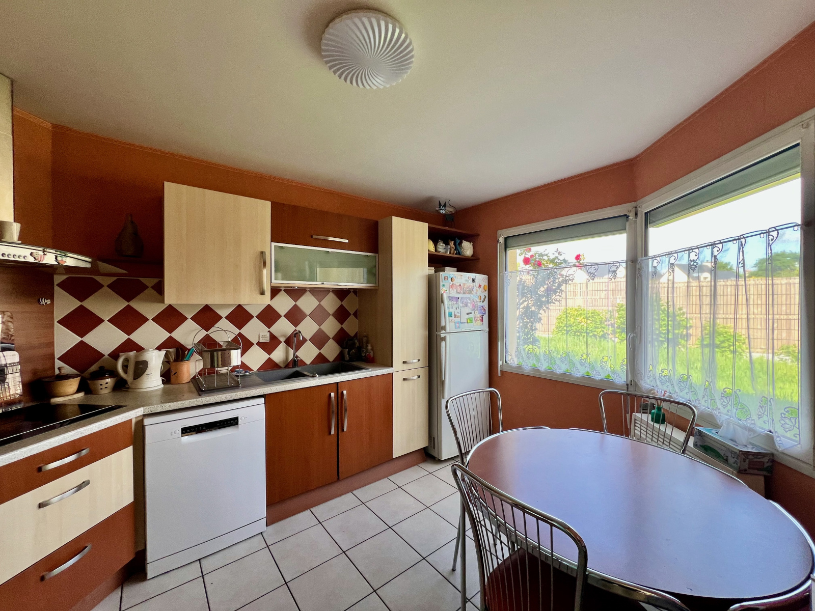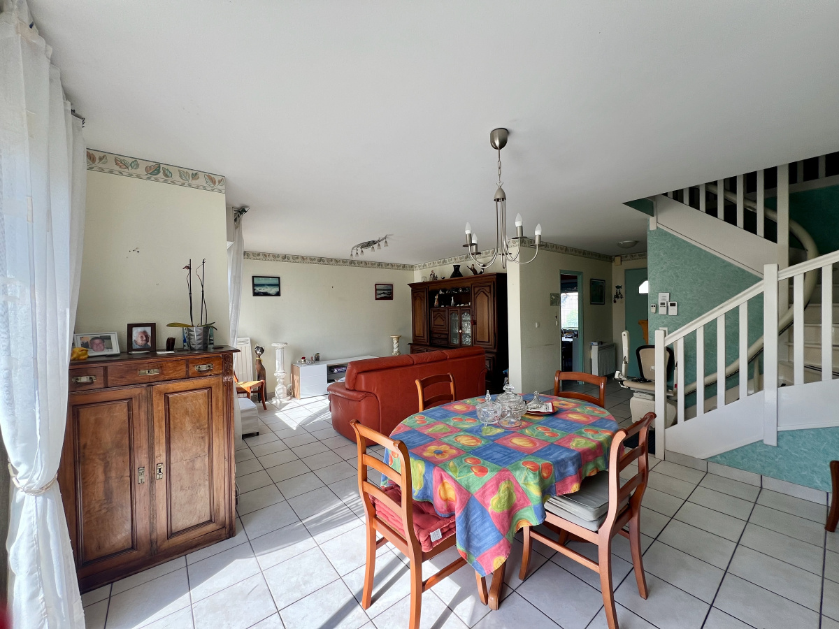Maison mitoyenne uniquement par le garage et bénéficant d'une belle parcelle de plus de 500 m2 entièrement cloturée.