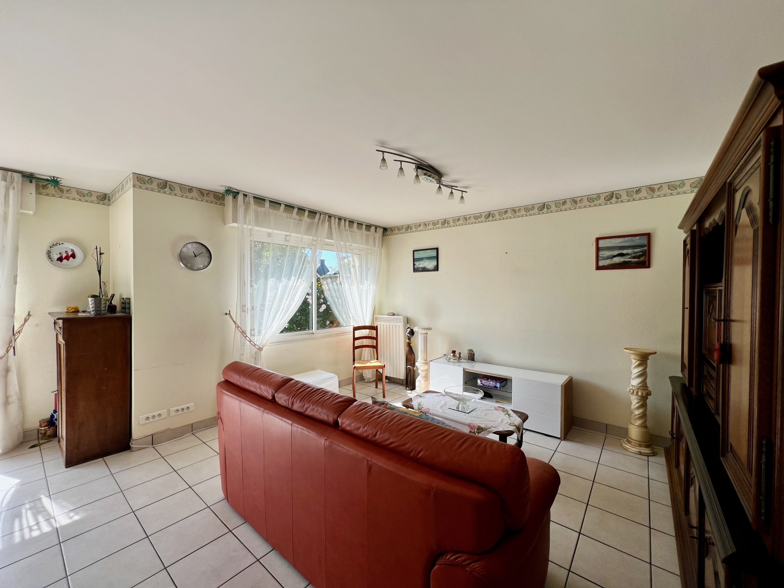 Dans un quartier calme situé au nord de Lorient, maison de 1997 comprenant au rez de chaussée, une entrée avec placard, cuisine aménagée et équipée, séjour-salon exposé sud donnant sur la terrasse et le jardin, WC séparé et un garage avec cuisine d'été et espace buanderie.