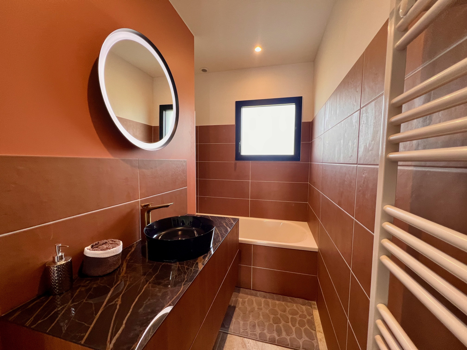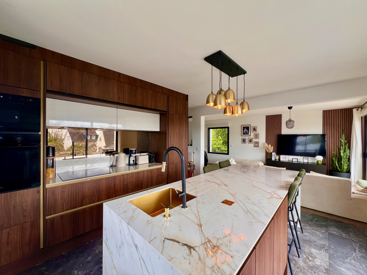 Grande pièce de vie lumineuse avec cuisine ouverte, 5 chambres, 3 salles d’eau, 3 WC.