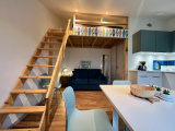 Studio de 18 m2 comprenant une pièce à vivre avec cuisine neuve aménagée et équipée, coin nuit en mezzannine, salle d'eau avec WC et la jouissance privative d'un jardinet de 31 m2 avec abri de jardin.
